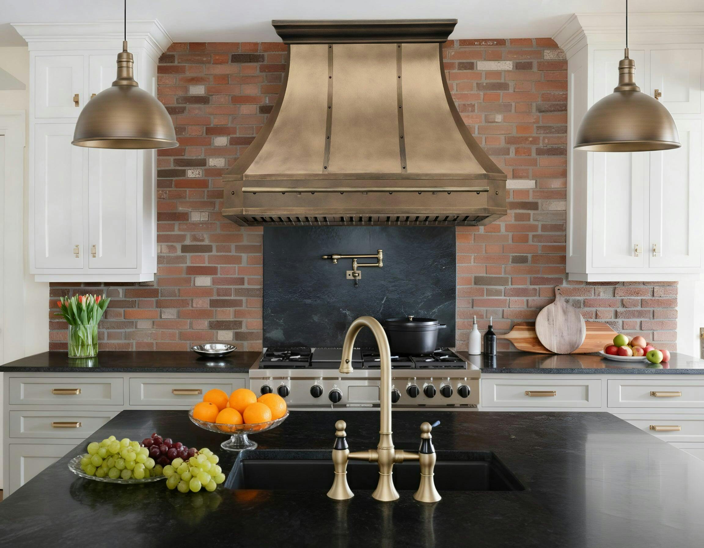 The handcrafted brushed finish gives the hood a timeless warmth that makes our kitchen feel inviting and full of personality.