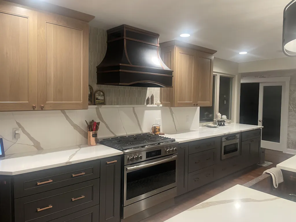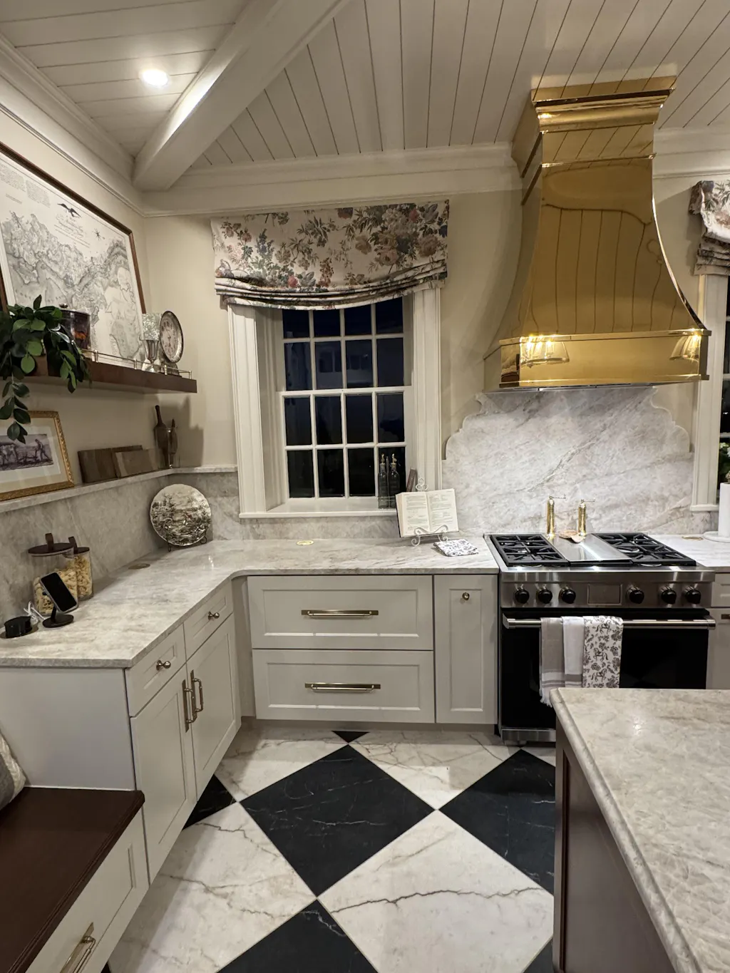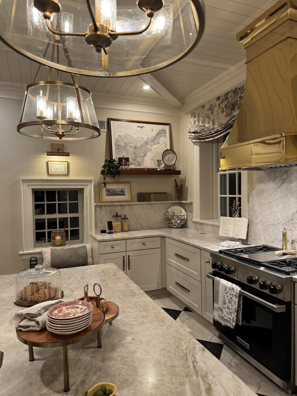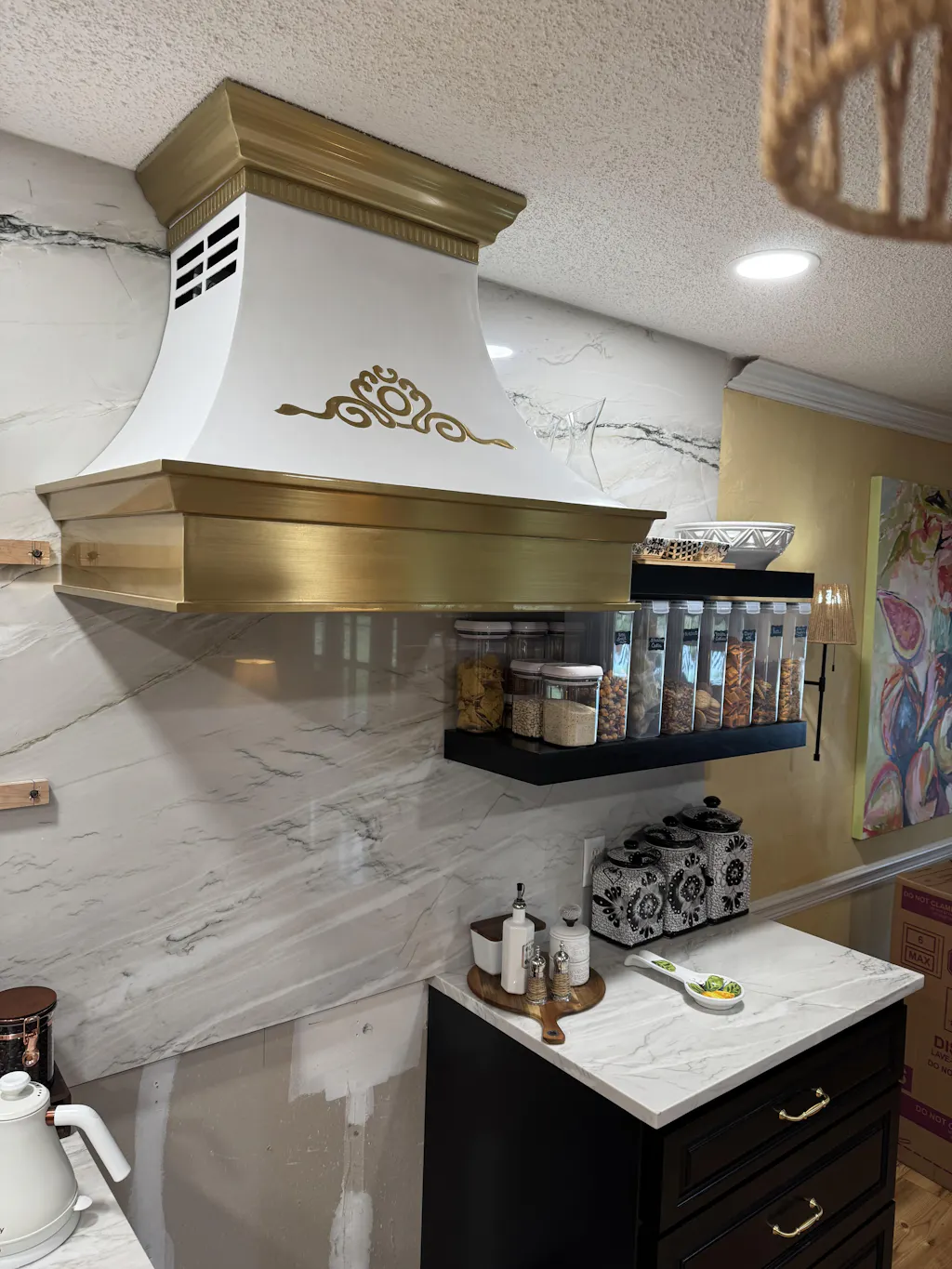 As we had hoped, the brass hood that we ordered from Elite has become the statement piece of our kitchen! It is a beautiful finish.